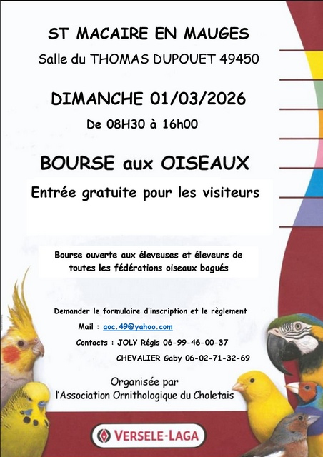 1er mars 2026 Bourse d'oiseaux organisée par l'AOC